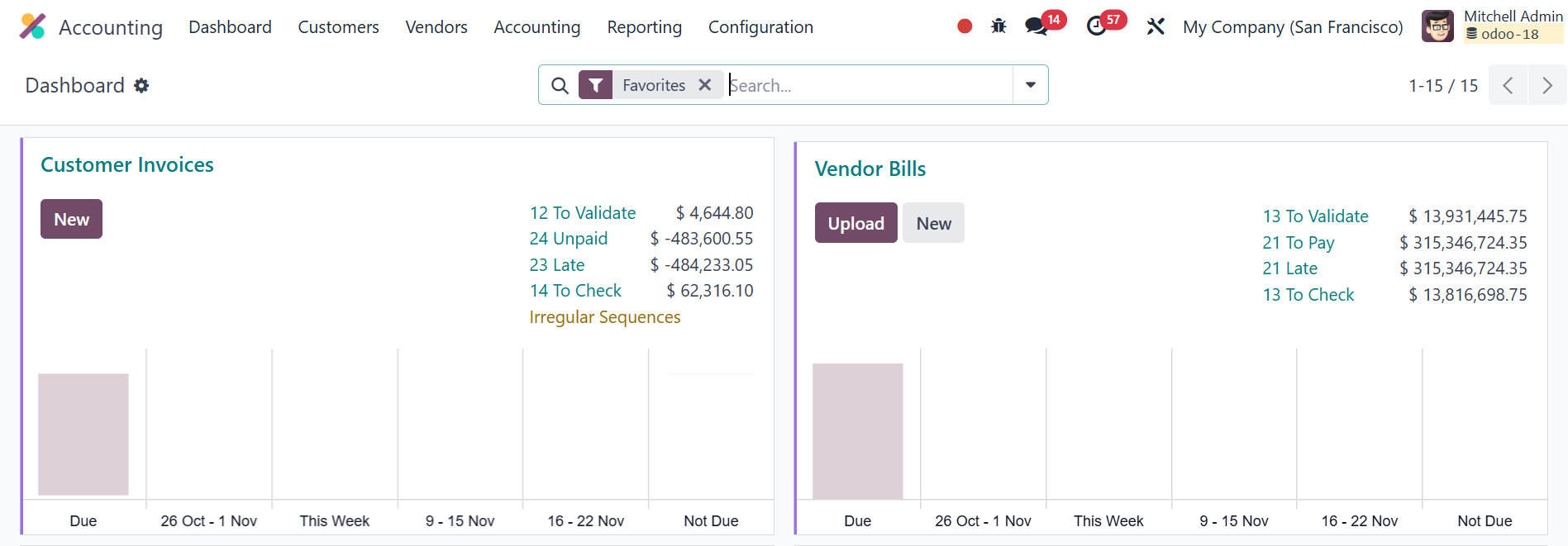Một hệ thống kế toán tích hợp giúp doanh nghiệp quản lý chi phí và doanh thu theo thời gian thực. Odoo Accounting cung cấp: